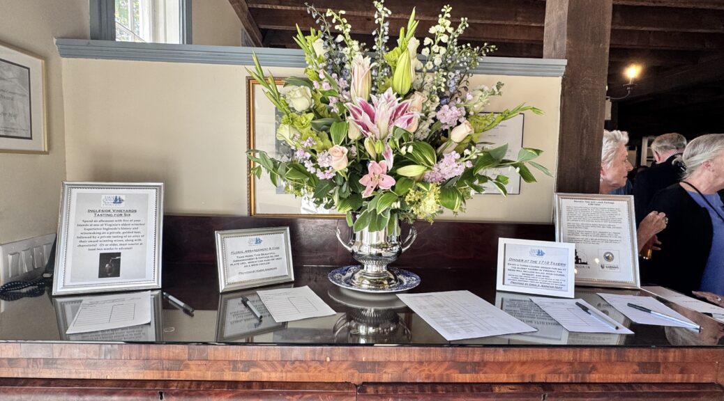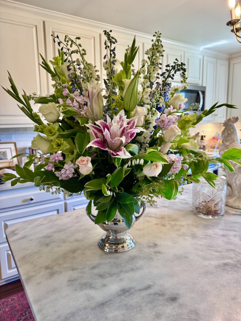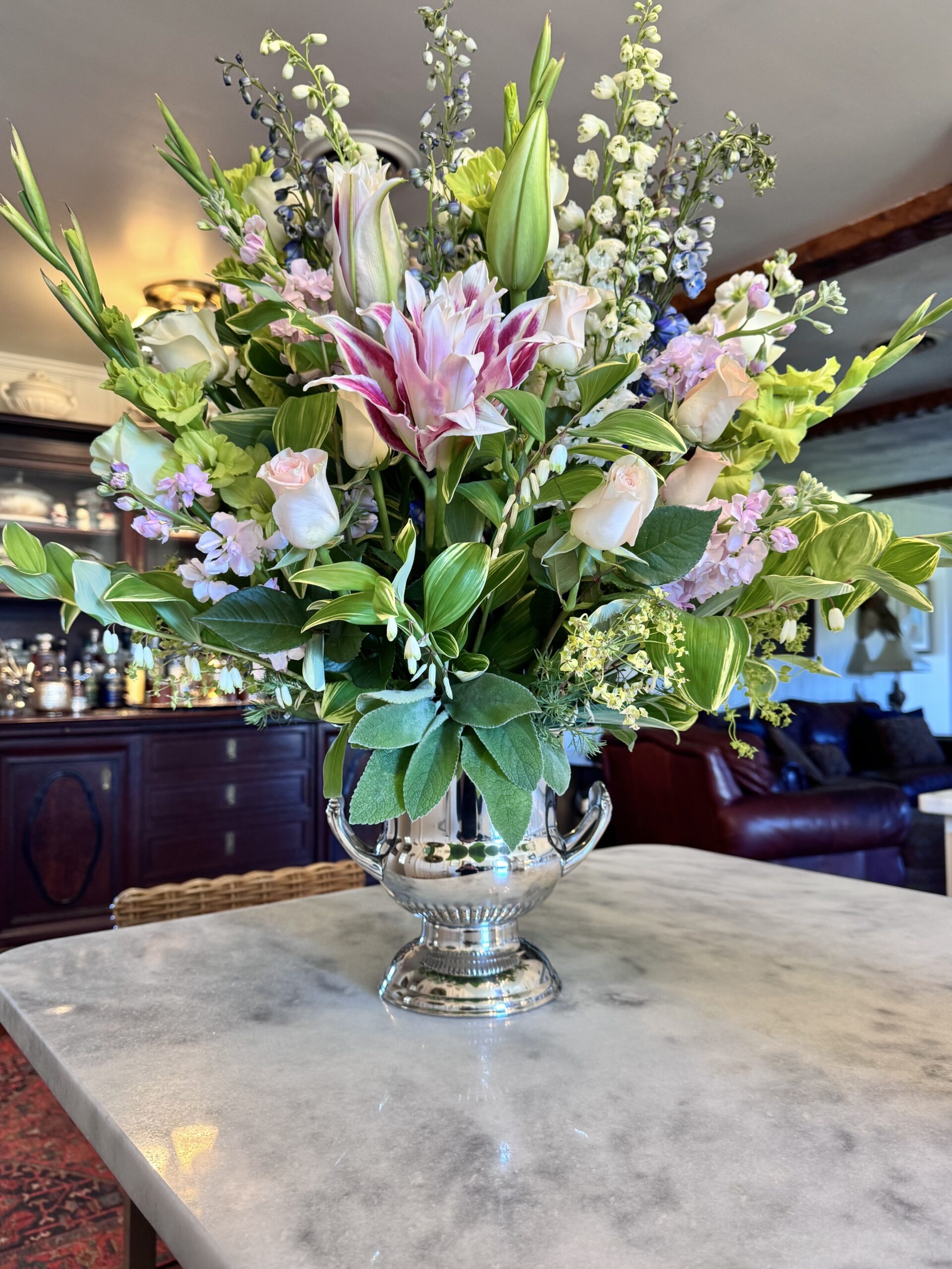 My arrangement for our curated Cocktails event for The Essex County Museum and Historical Society at 1710 Tavern in Tappahannock. Such a lovely event and the very best venue! The greenery was from my garden. As my roses were not yet in bloom, I chose and purchased these roses for my arrangement, including gladiolis, delphiniums and assorted stocks. They were chosen to complement the Silver plated vintage urn and the 1710 Tavern itself. This is the fifth year that I have created one for the museum’s auction. After a very busy day, I laid down to sleep with a huge smile on my face, because the gentleman who won the arrangement bought it for his wife as an anniversary gift! That made my day! What an honor to be part of something so special and at the same time raise funds for a worthwhile cause and non-profit. #essexcountyva #tappahannock #1710tavern